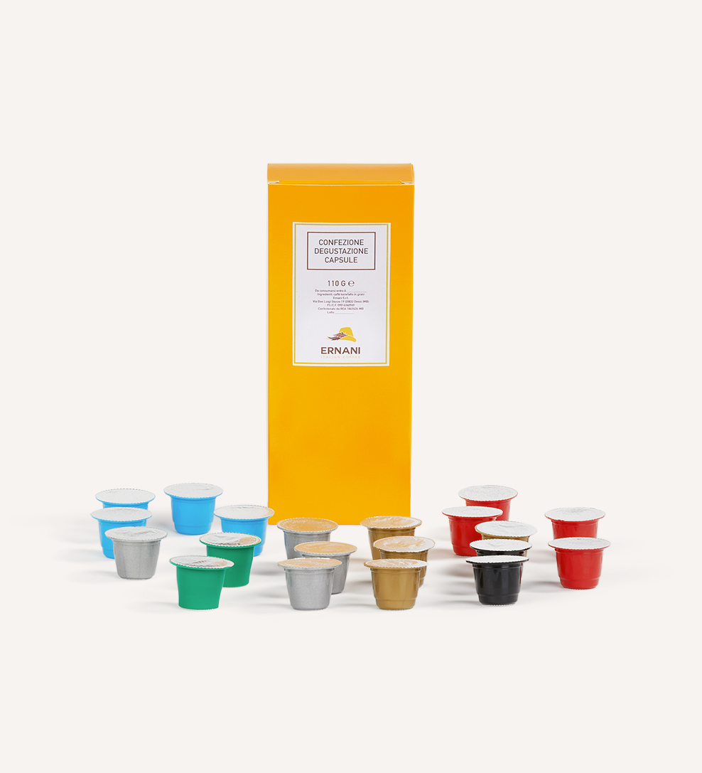 Confezione degustazione con 20 capsule Ernani compatibili Nespresso in 6 varianti di miscele.