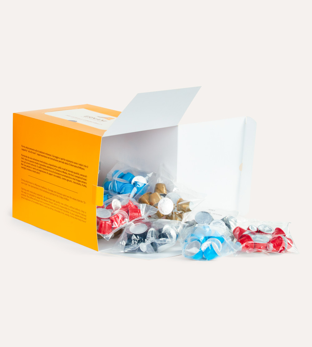 Da oggi non ci saranno limiti al gusto con la confezione da 200 capsule Ernani compatibili con il sistema Nespresso. Potrai così dedicarti a ben 200 esperienze di vero piacere.