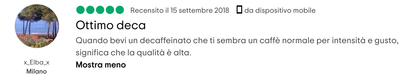 Se bevi un caffè decaffeinato che non è buono, non è dovuto all’assenza di caffeina, ma la colpa è da imputare al tostatore che non ha selezionato una materia prima di qualità, oppure può averla rovinata con una tostatura non appropriata!